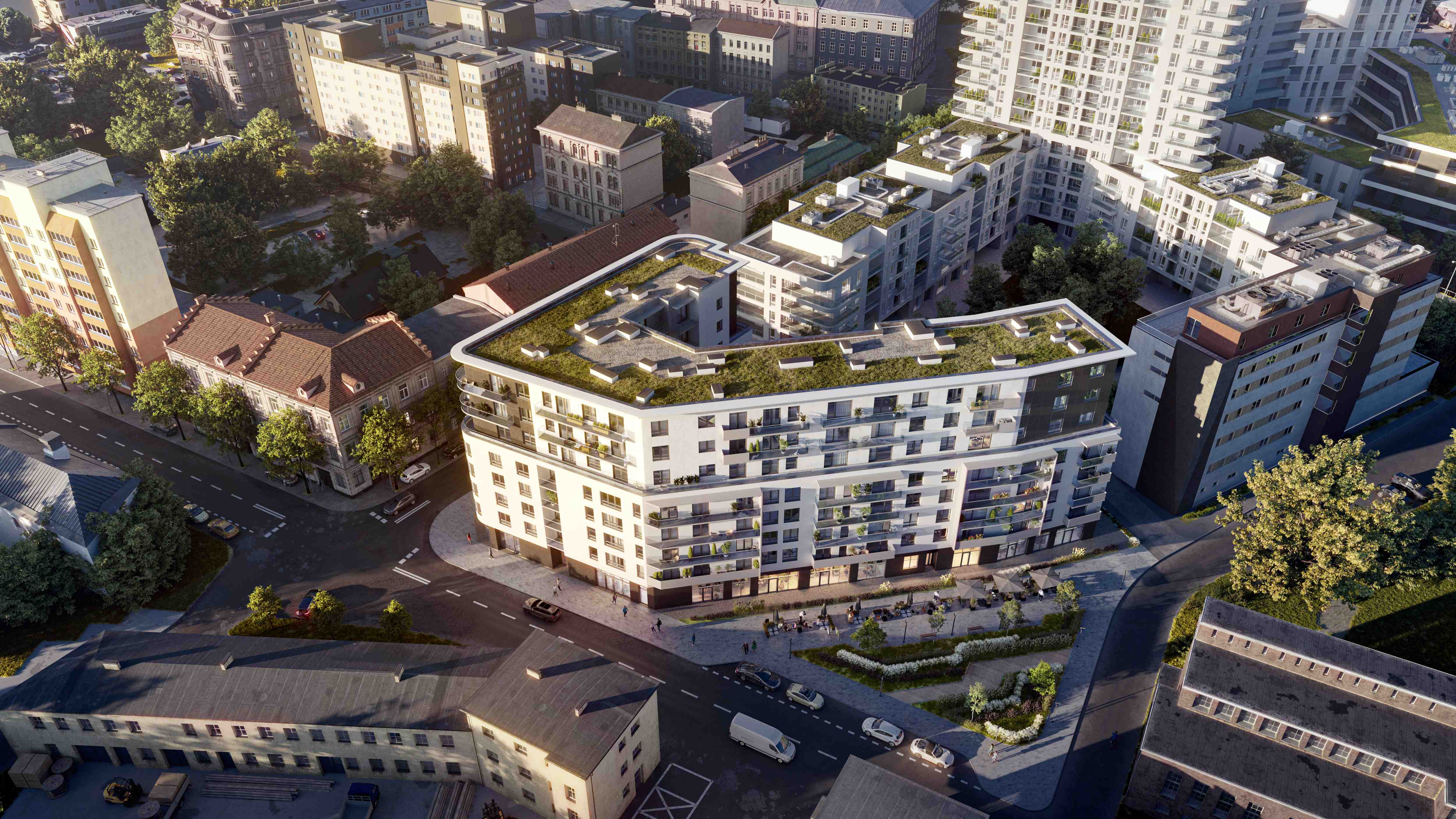 Przewidziane jest 700 m2 zielone patio do wyłącznej dyspozycji mieszkańców.